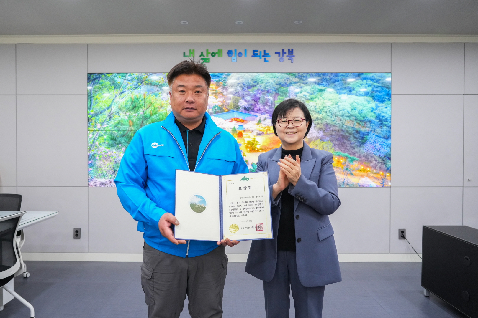 3월 26일 구청장실에서 <카포스 강북구지회 표창수여 및 간담회>가 열렸습니다.