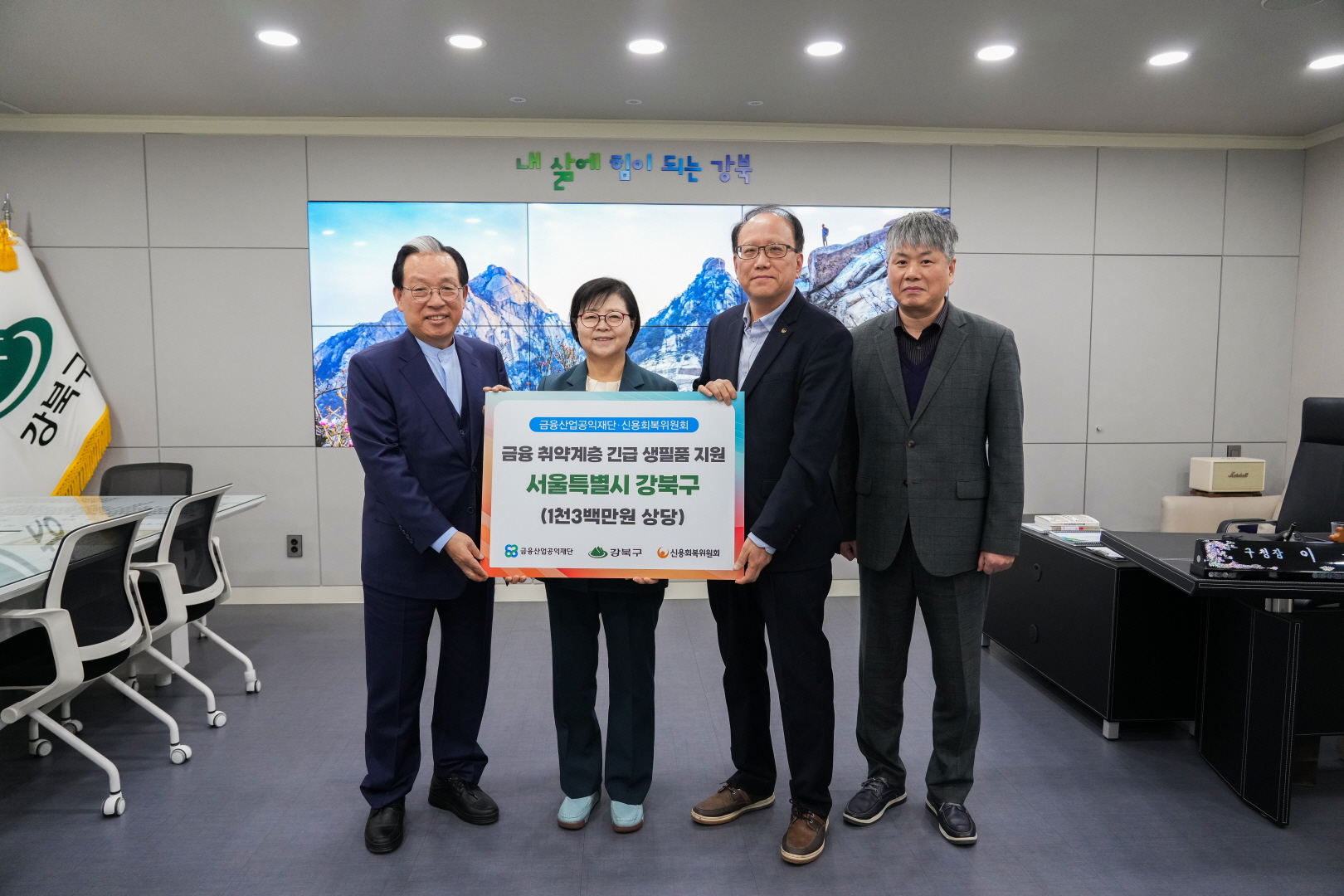 4월 9일 구청장실에서 <금융산업공익재단&신용회복위원회 기부물품 전달식>이 열렸습니다.