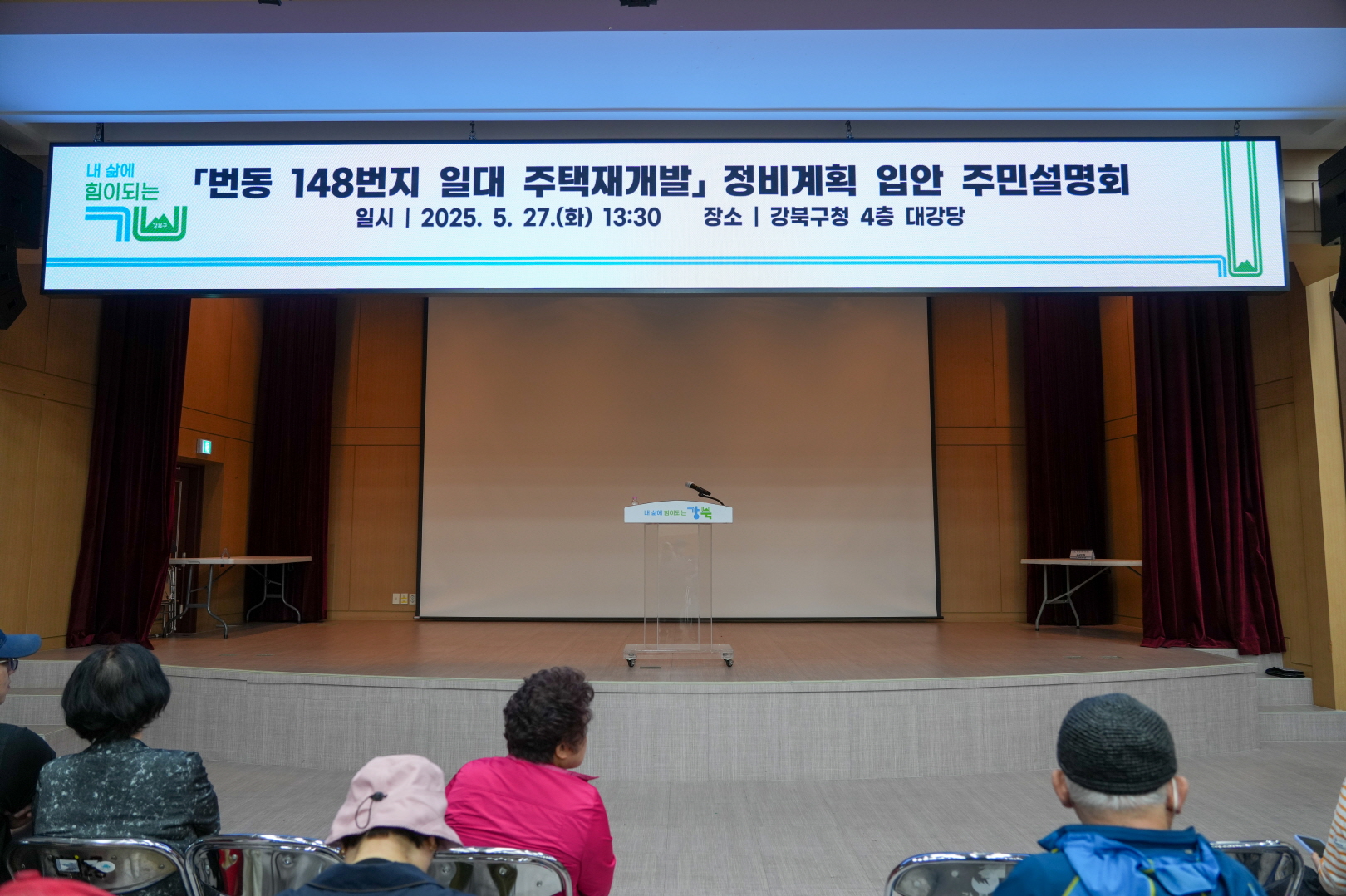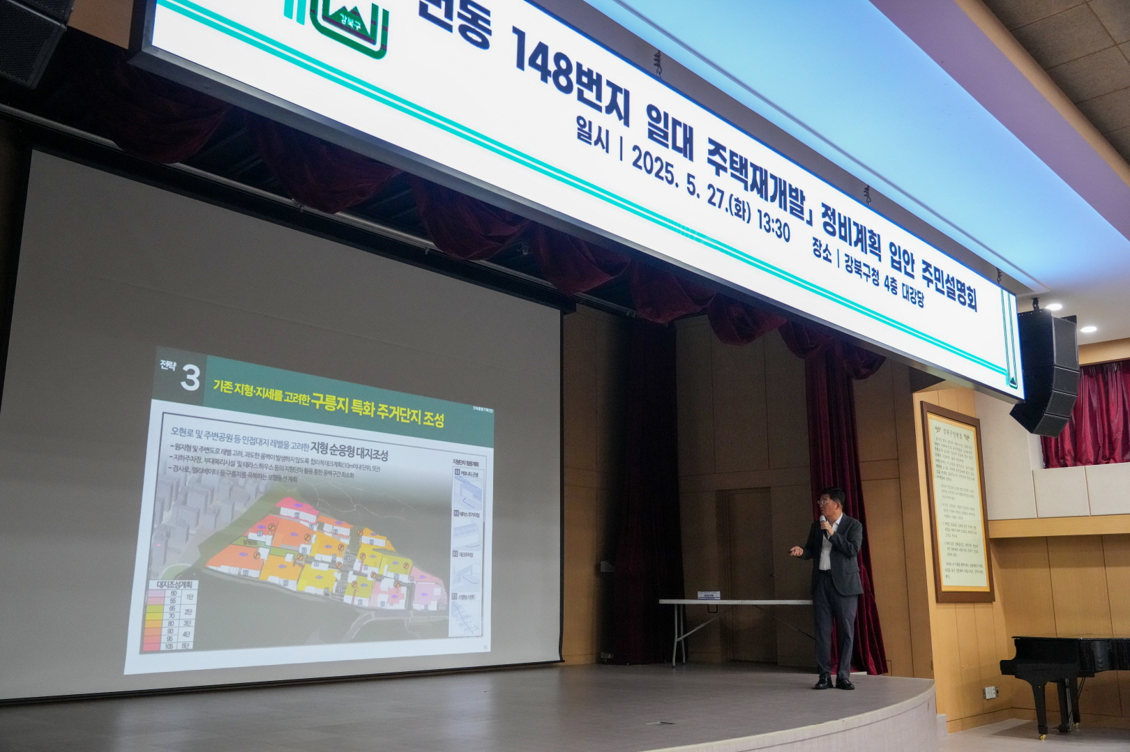 5월 27일 구청 대강당에서 <번동 148번지 일대 주택재개발 정비계획 입안 주민설명회>가 열렸습니다.