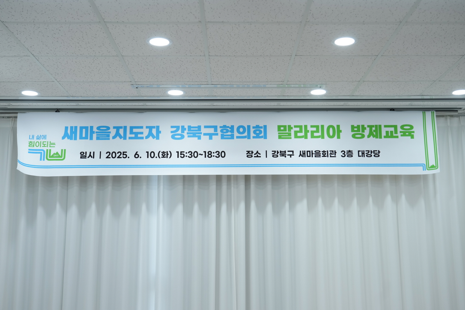6월 10일 새마을회관 대강당에서 <새마을지도자 강북구협의회 말라리아 방제교육>이 열렸습니다.