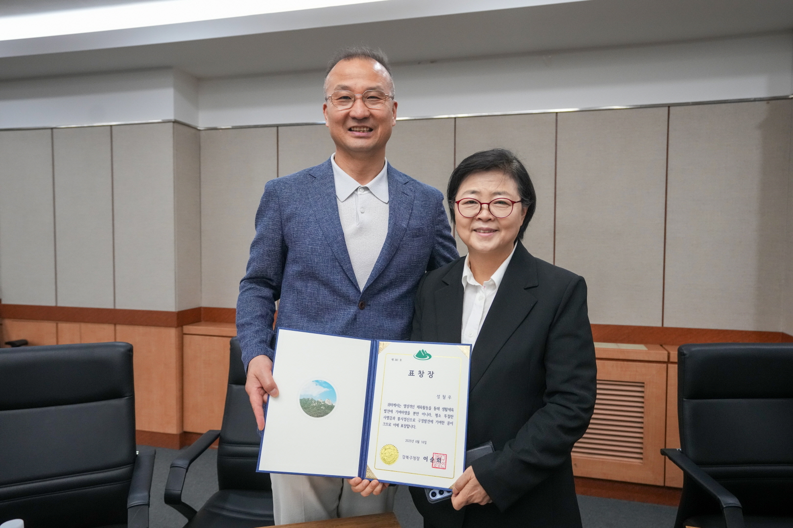 6월 16일 강북구청 기획상황실에서 <상반기 동생활체육 유공 표창수여식>이 열렸습니다,