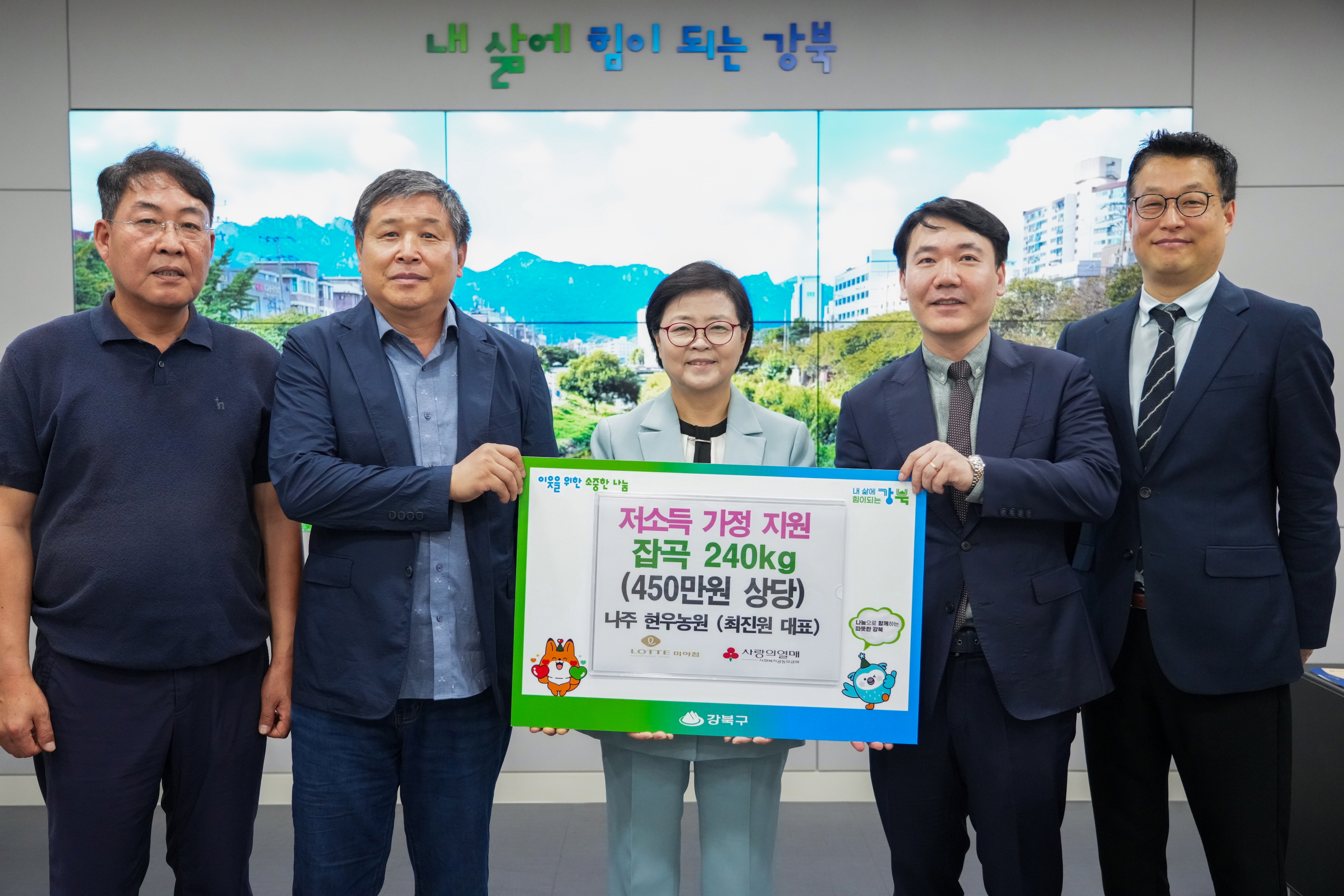 7월 2일 강북구청 구청장실에서 <기부물품 전달식-나주 한우농원>이 열렸습니다.