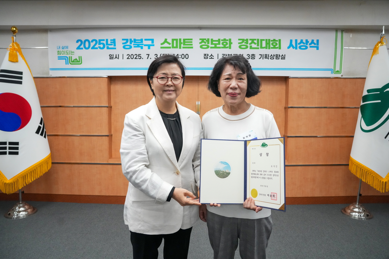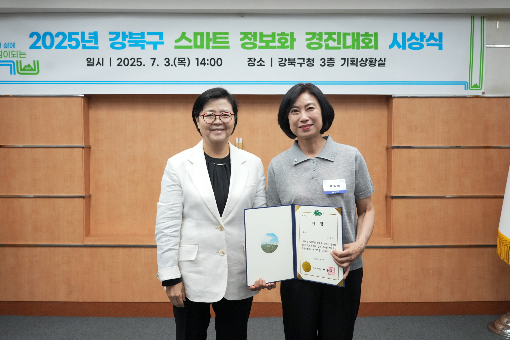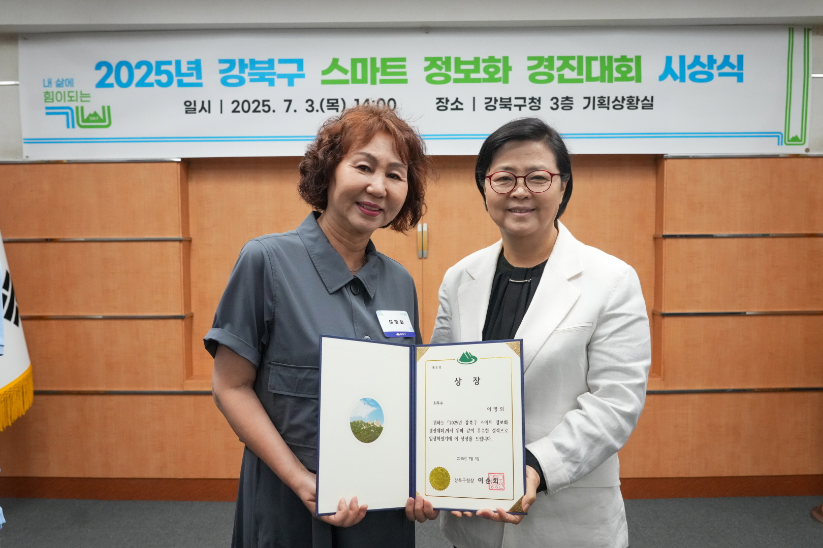 7월 3일 강북구청 기획상황실에서 <스마트 정보화 경진대회 시상식>이 열렸습니다.
