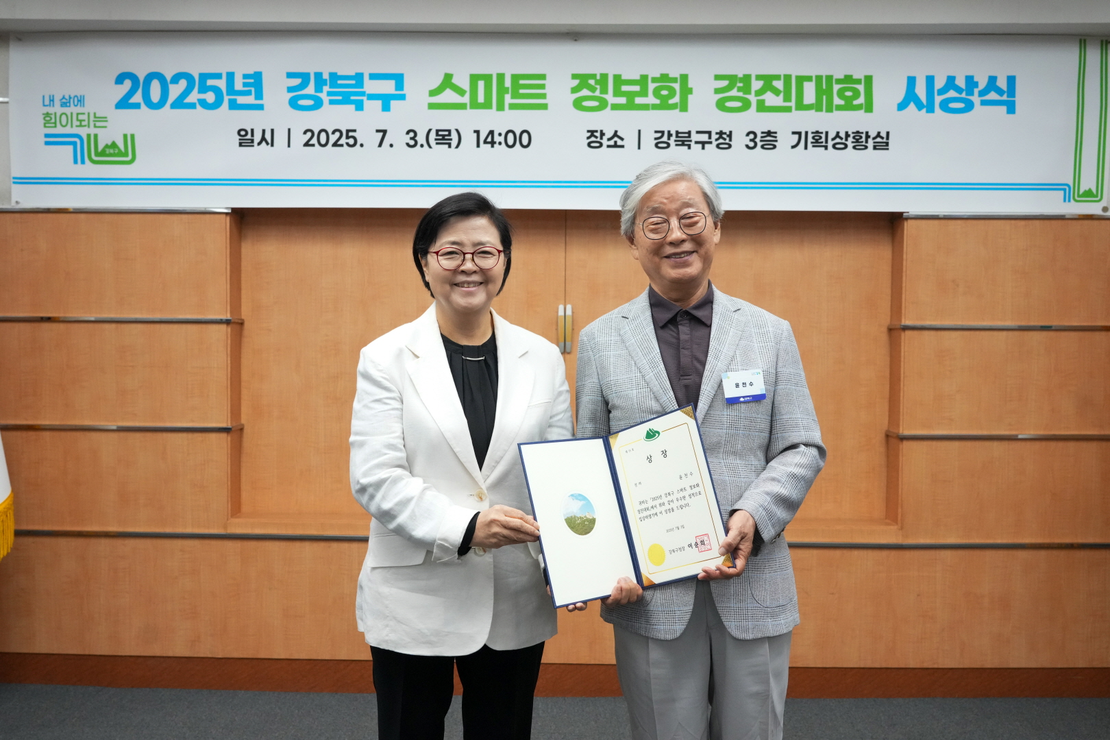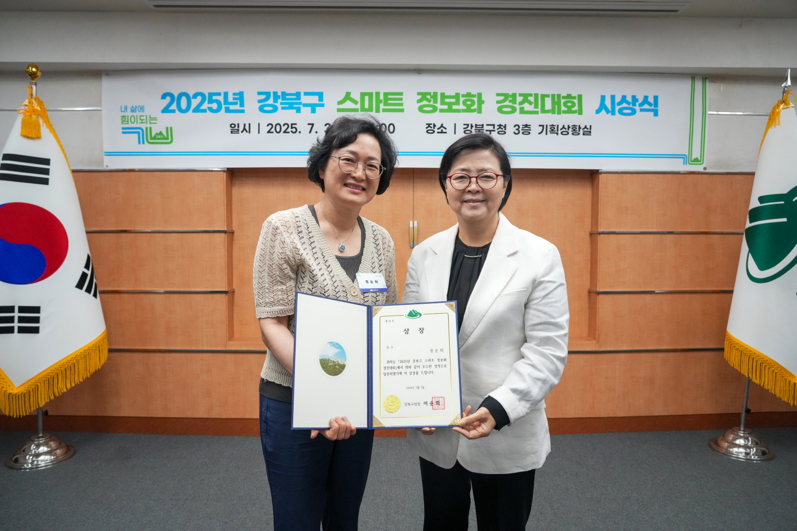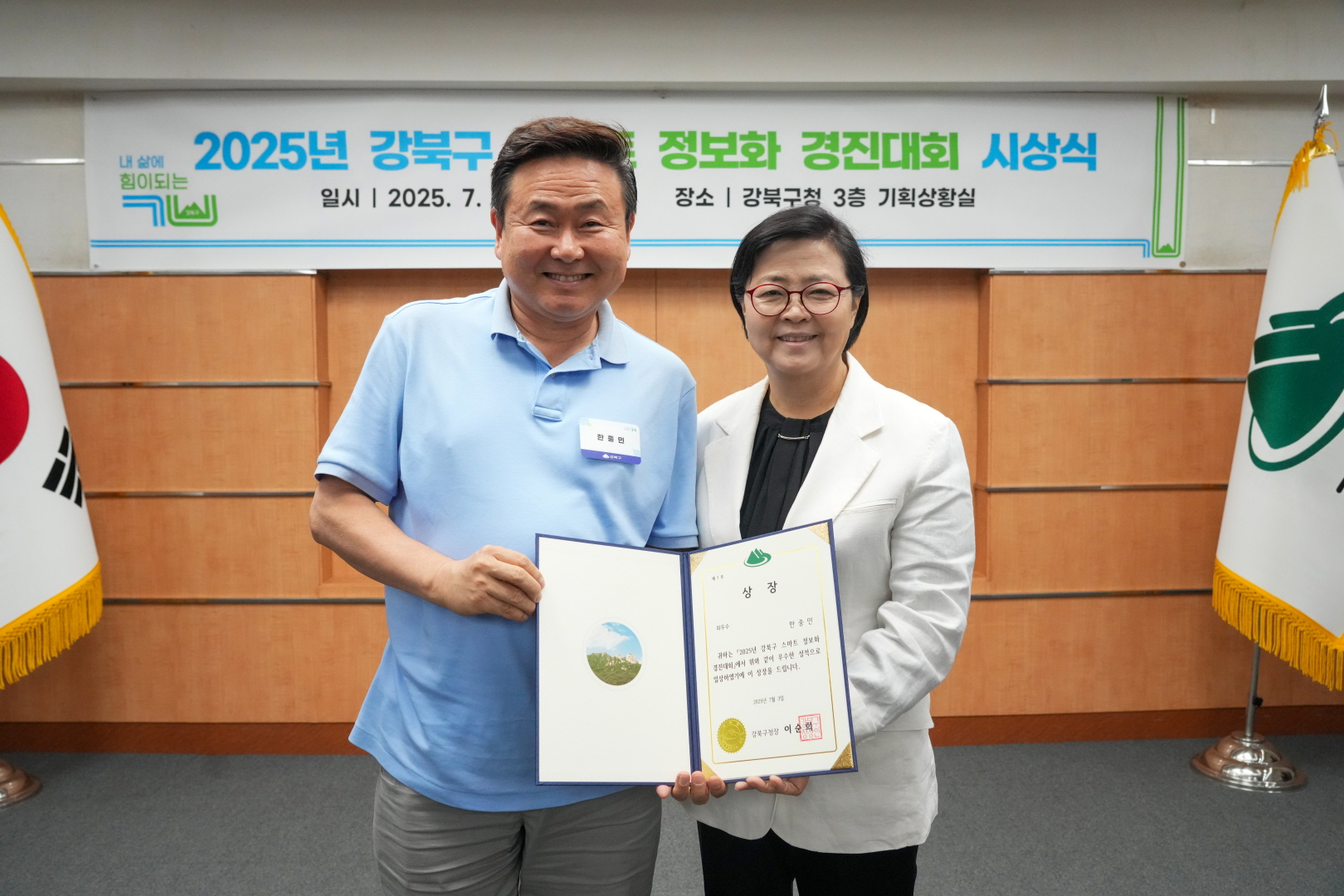 7월 3일 강북구청 기획상황실에서 <스마트 정보화 경진대회 시상식>이 열렸습니다.