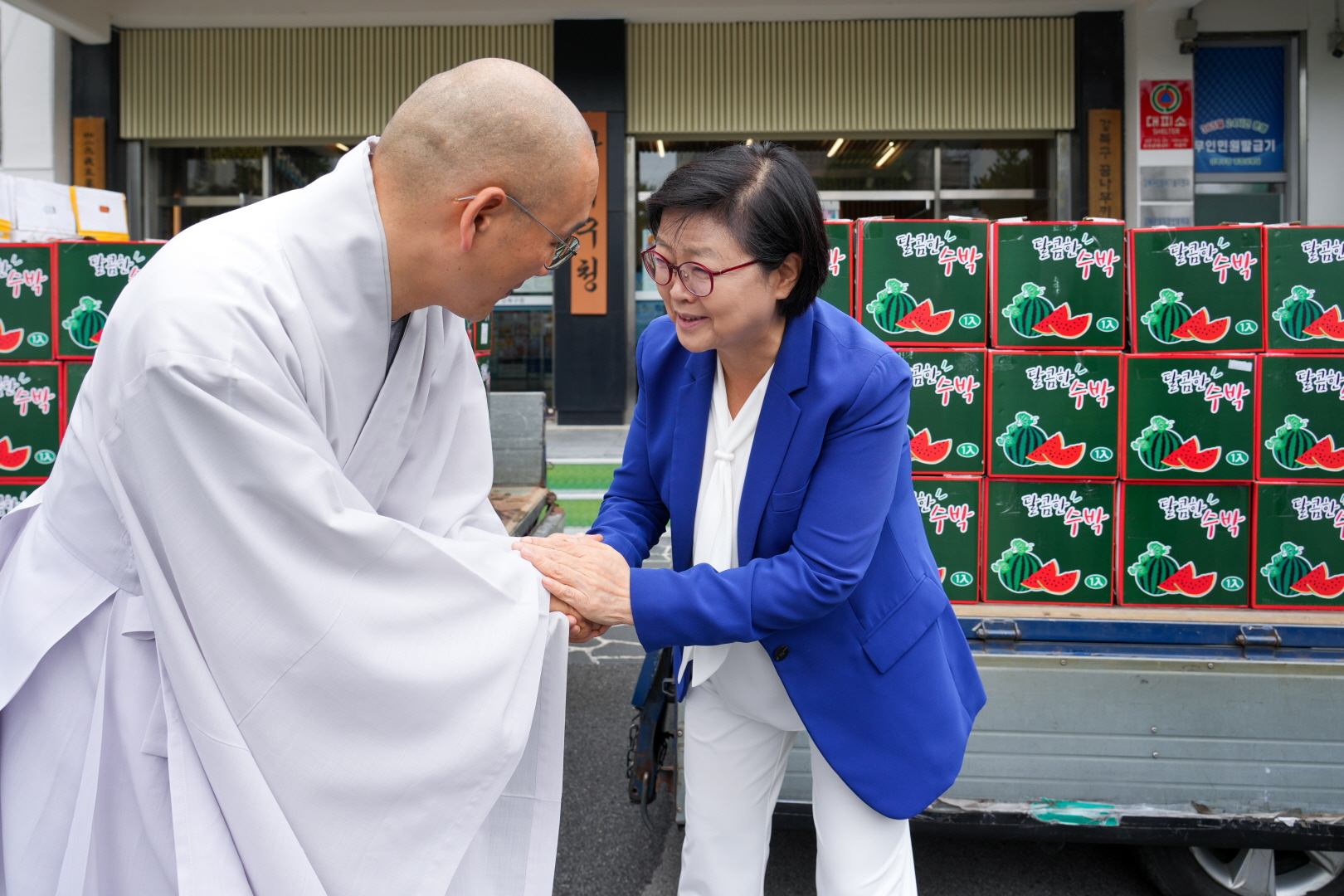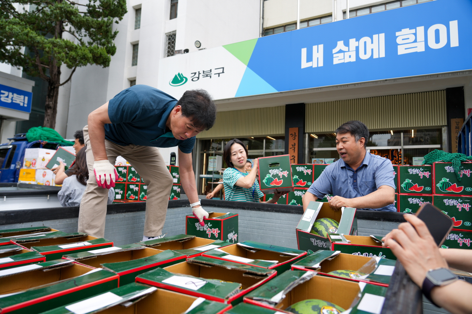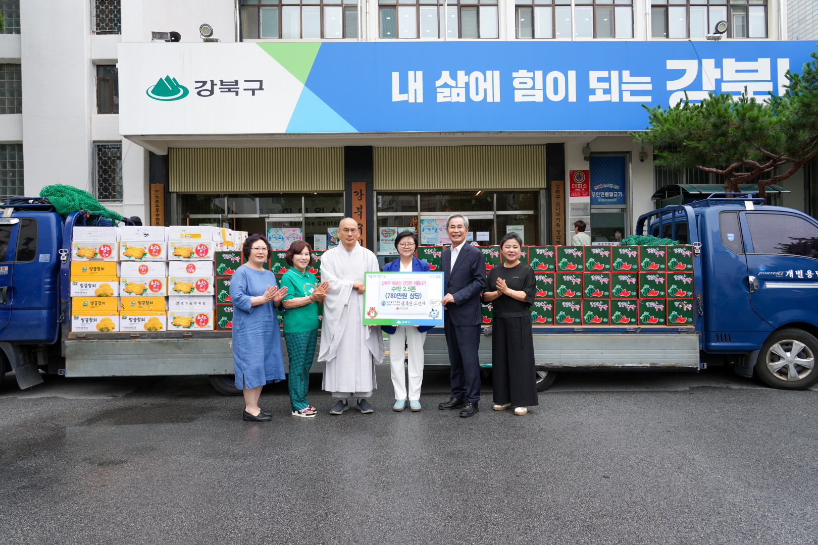 7월15일 강북구청 구청광장에서 <2025 강북구 어르신 건강한 여름나기-강북구청 산하 경로당 수박 전달식>이 열렸습니다.
