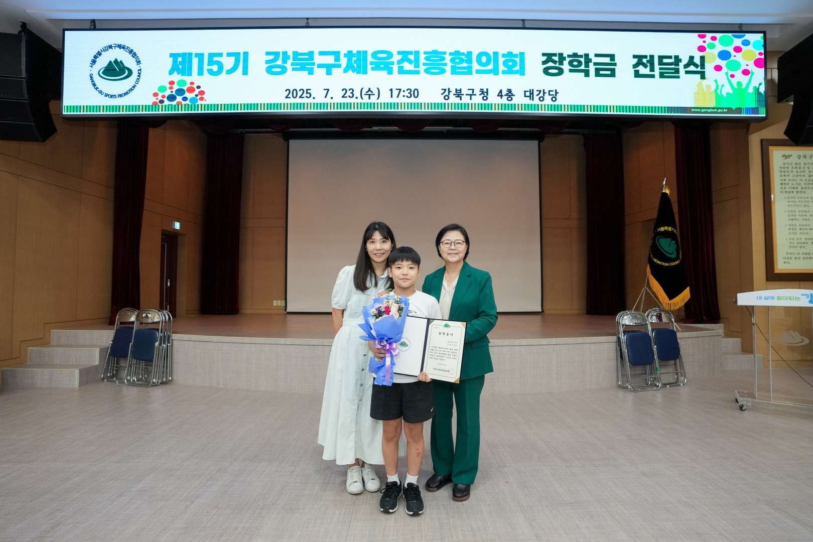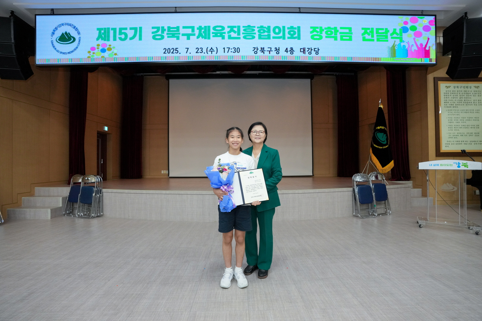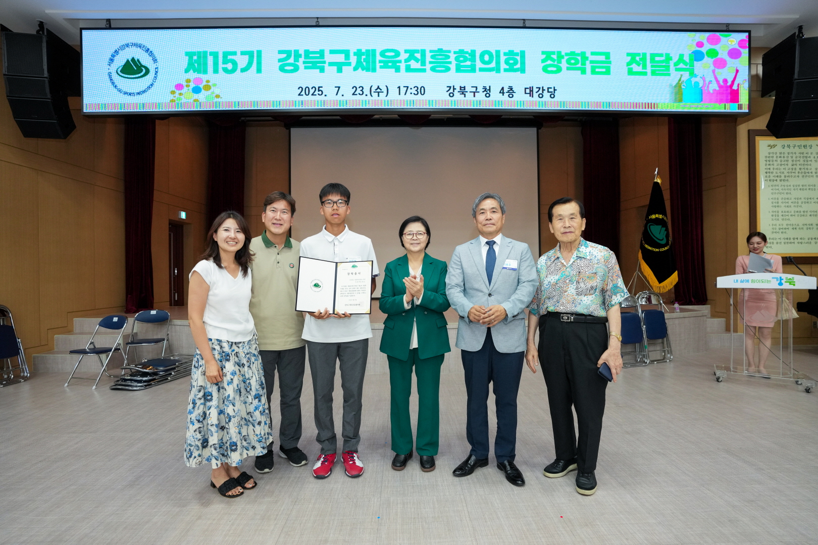7월 23일 강북구청 대강당에서 <체육진흥협의회 장학금 전달식>이 열렸습니다.
