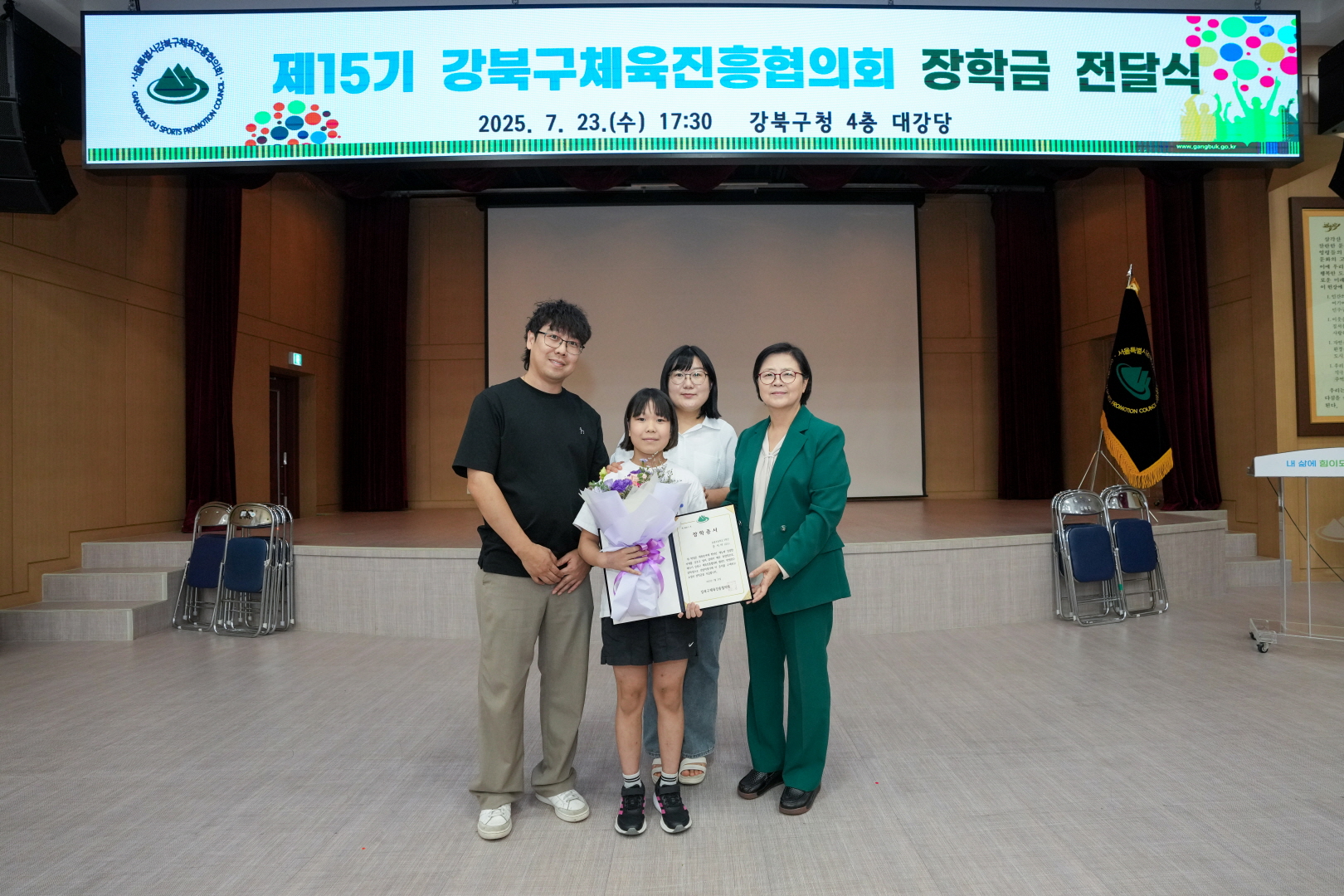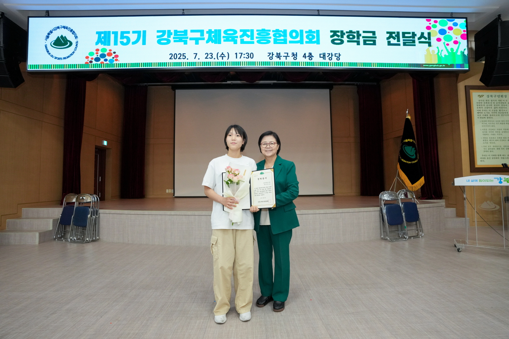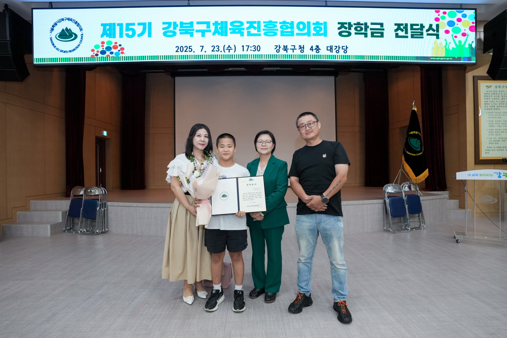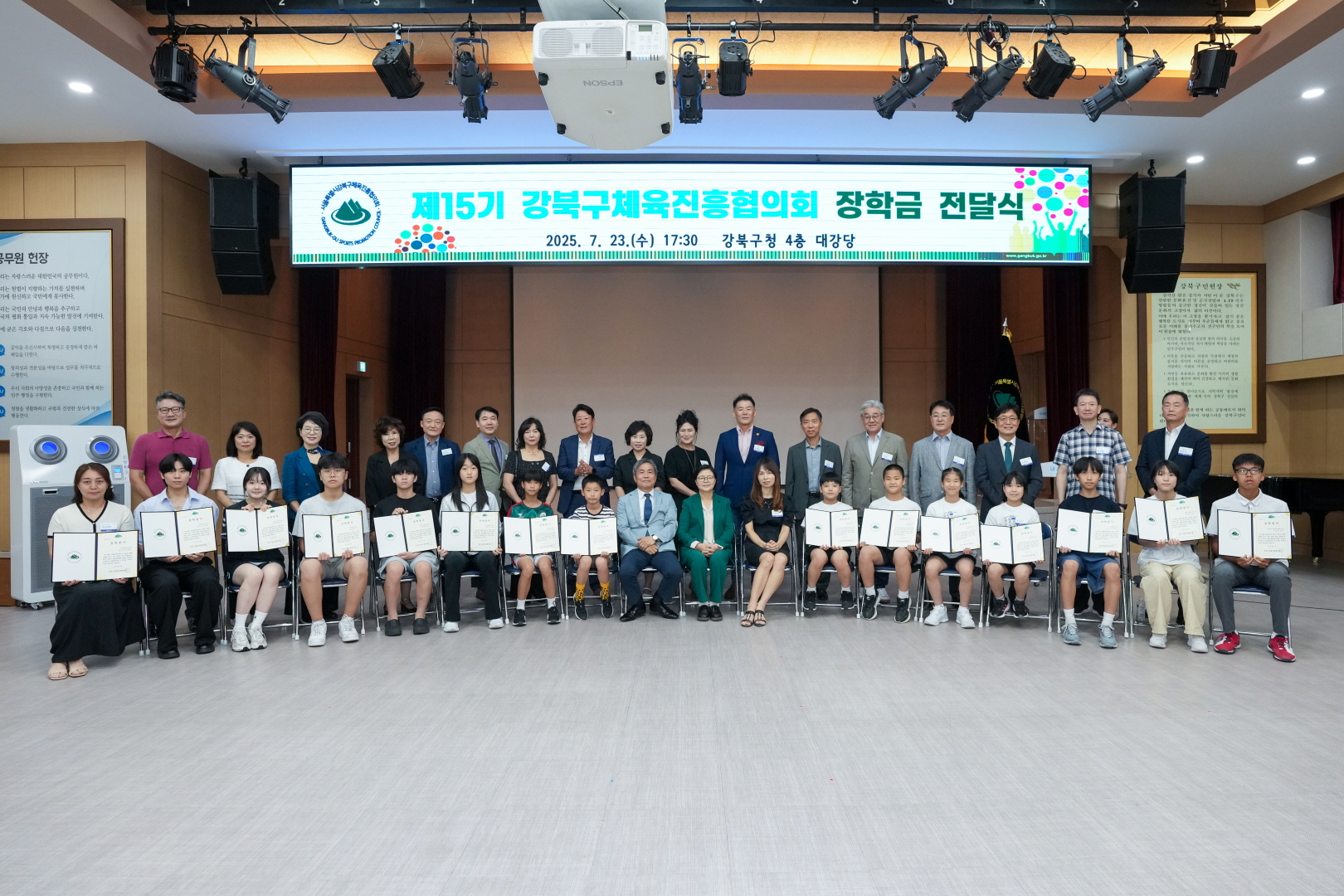7월 23일 강북구청 대강당에서 <체육진흥협의회 장학금 전달식>이 열렸습니다.