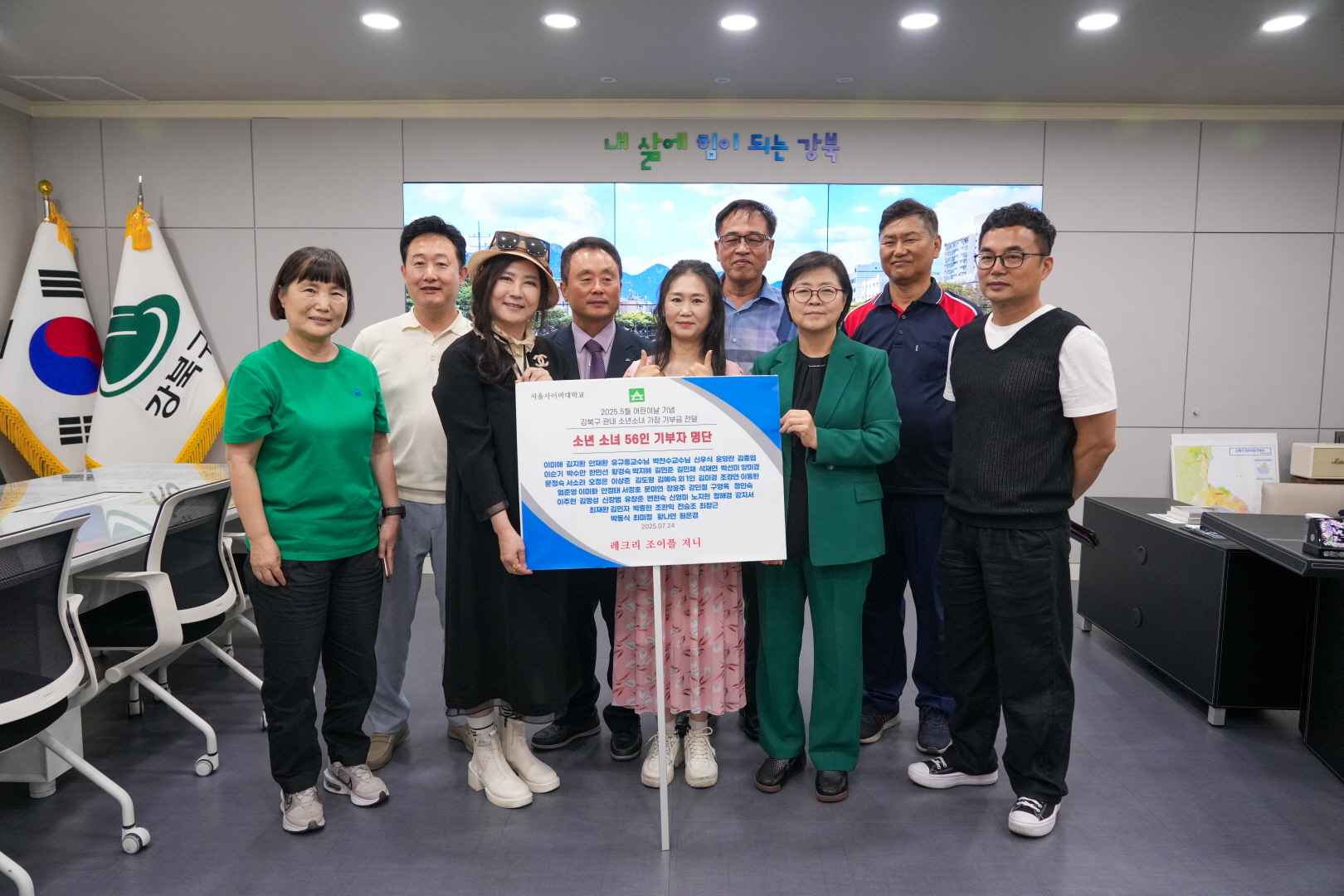7월 24일 강북구청에서 <기부금 전달식 - 서울사이버대학교 레크레이션 동아리>이 열렸습니다.
