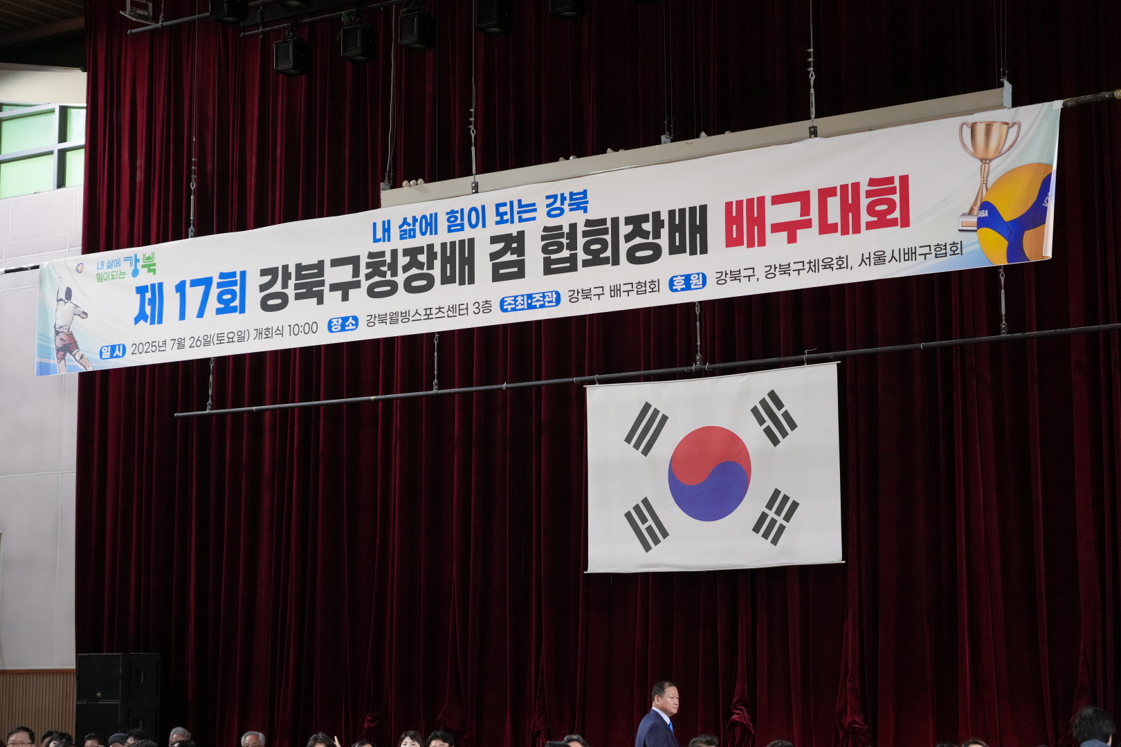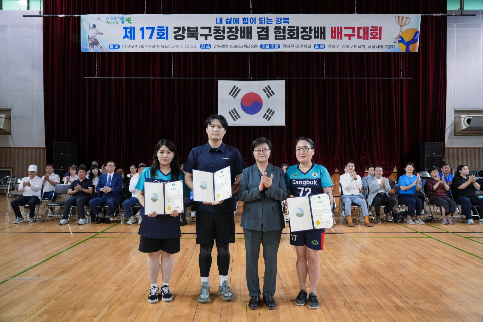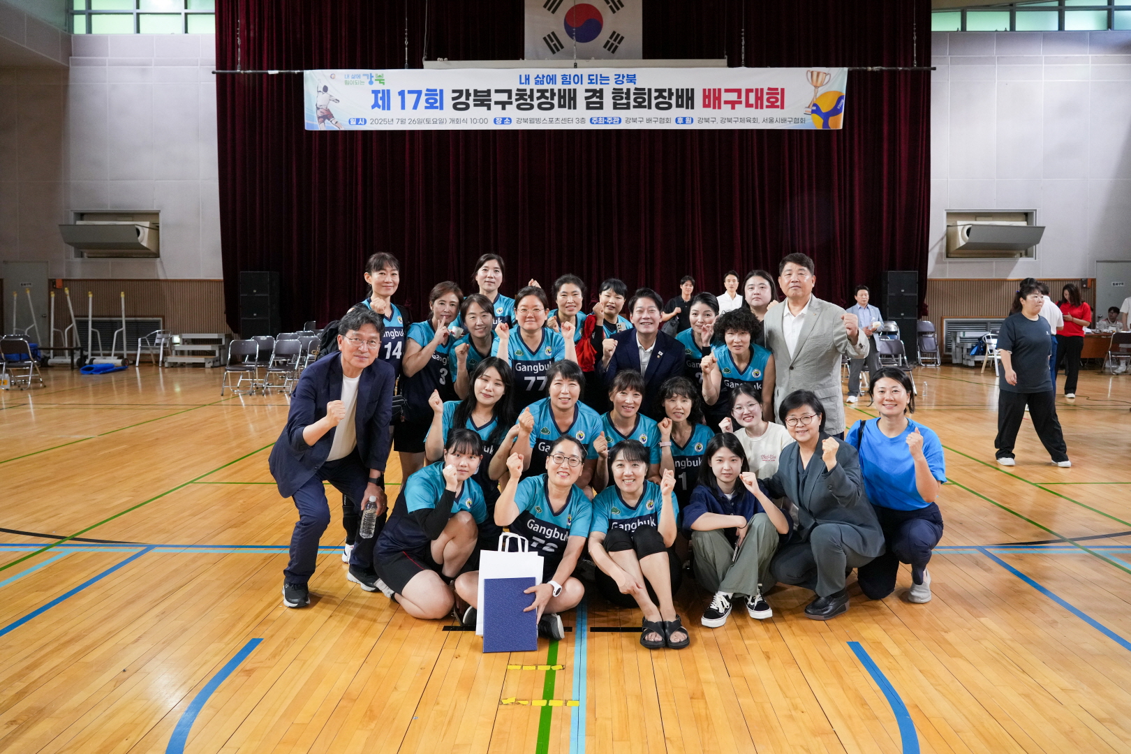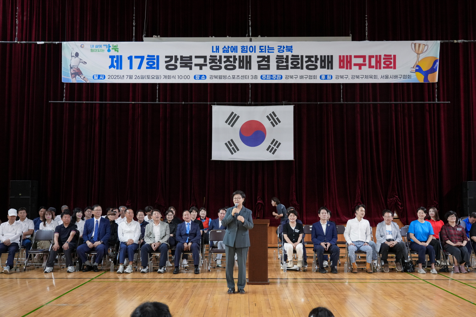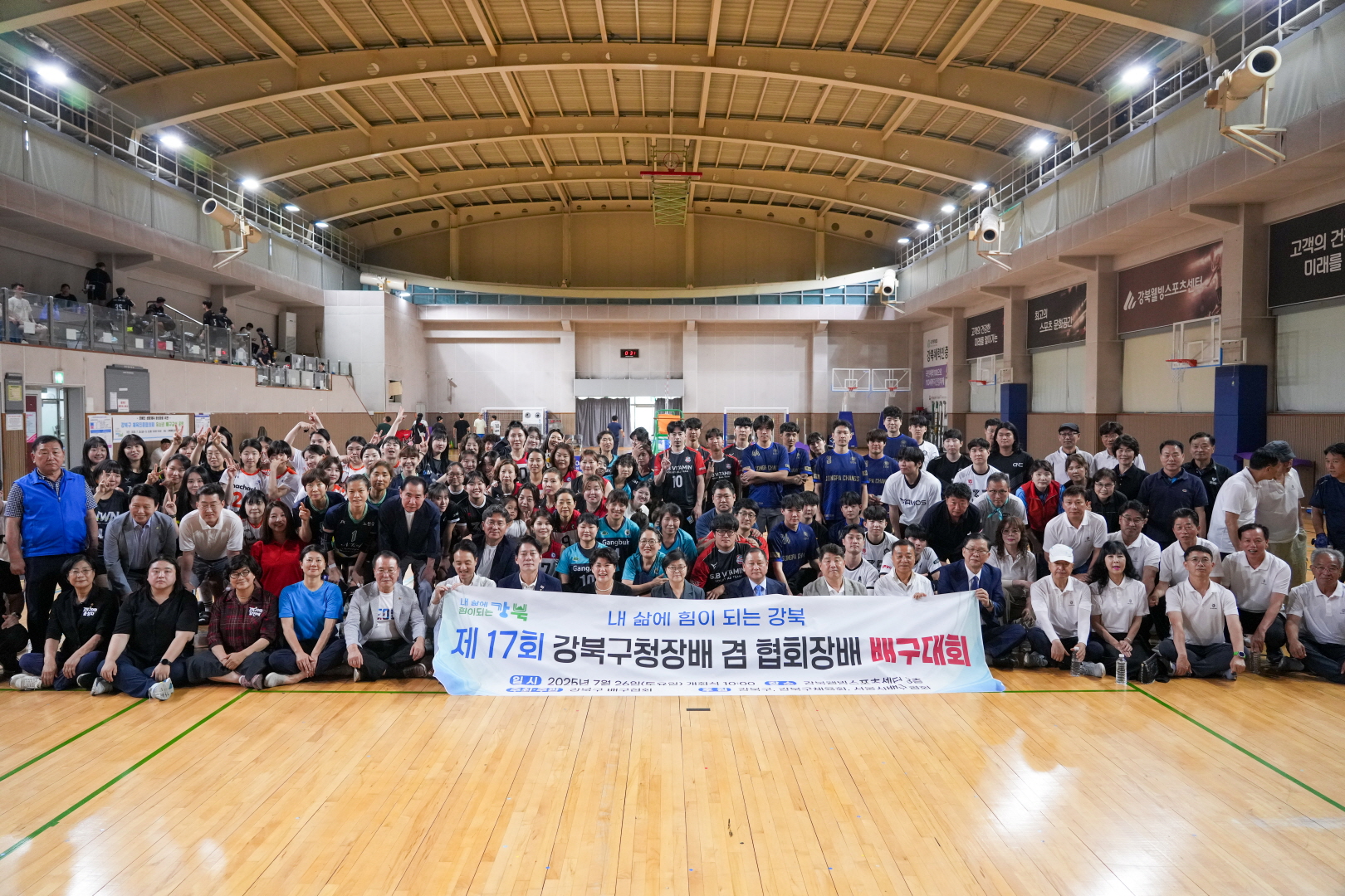 7월 26일 웰빙스포츠센터에서 <제17회 강북구청장배 겸 협회장배 배구대회>가 열렸습니다.