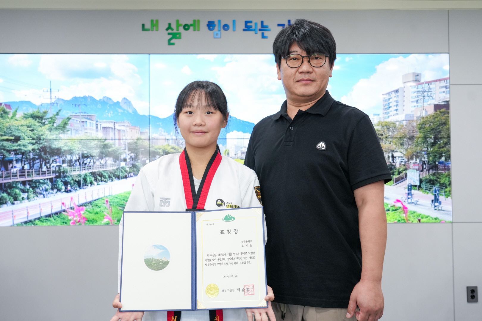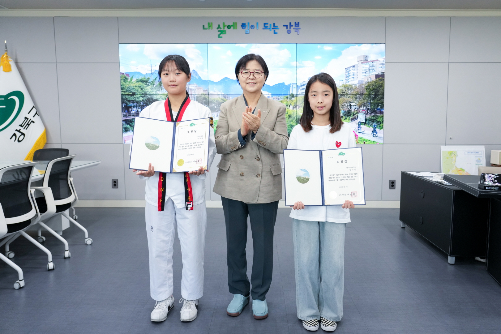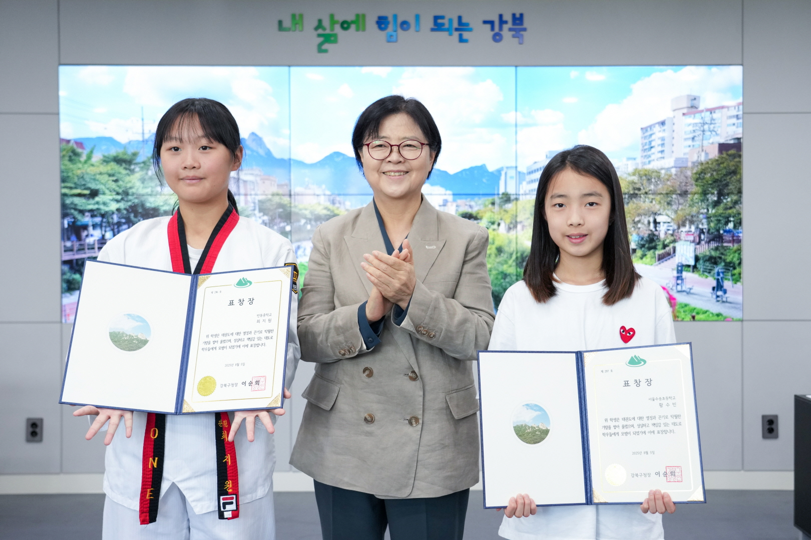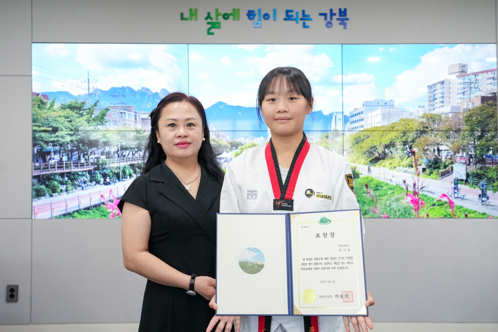 8월 5일 강북구청 구청장실에서 <전국 태권도대회 우승자 표창 수여식>이 열렸습니다.