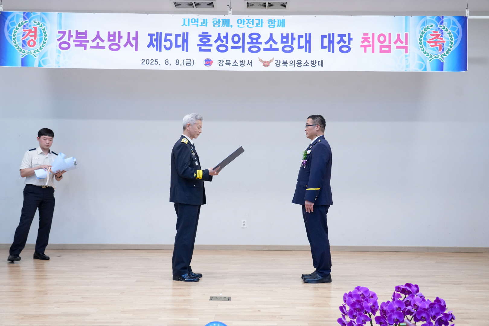 8월 8일 강북소방서에서 <혼성의용소방대장 취임식>이 열렸습니다.