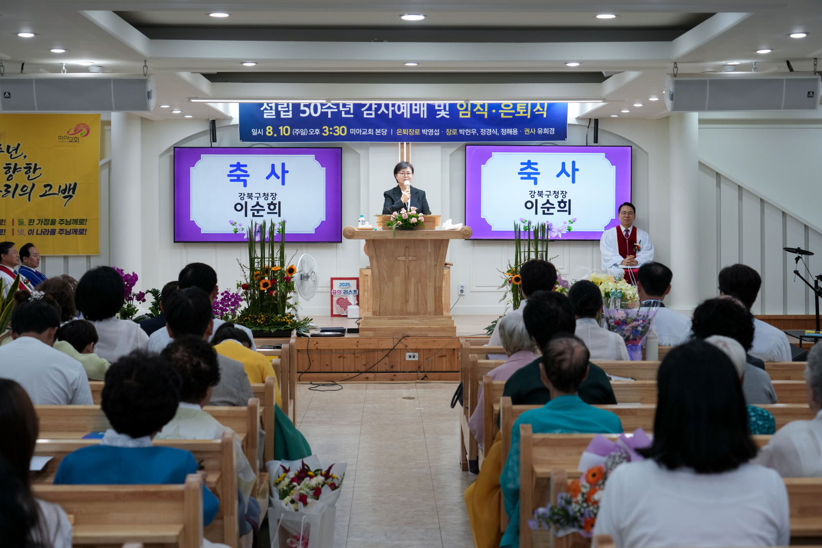 8월 10일 미아교회에서 <미아교회 설립 50주년 감사예배 및 은퇴,임직식>이 열렸습니다.
