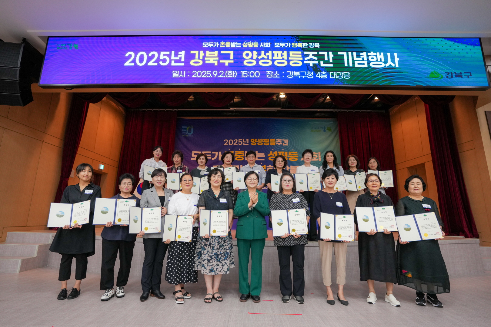 9월 2일 강북구청 대강당에서 <2025년 강북구 양성평등주간 기념행사 >가 열렸습니다.
