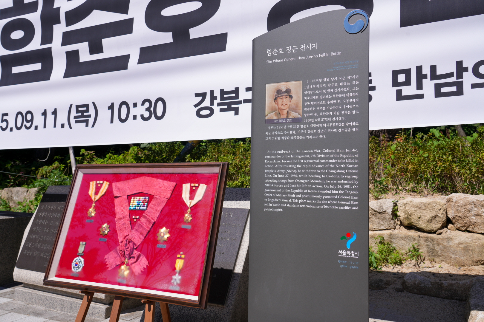 9월 11일 우이동 만남의 광장에서 <함준호 장군비 이전 및 추모식 >이 열렸습니다.