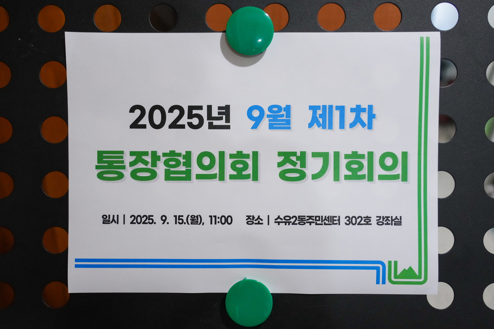 9월 15일 수유2동주민센터에서 <수유2동 통장협의회 정기회의>가 열렸습니다.