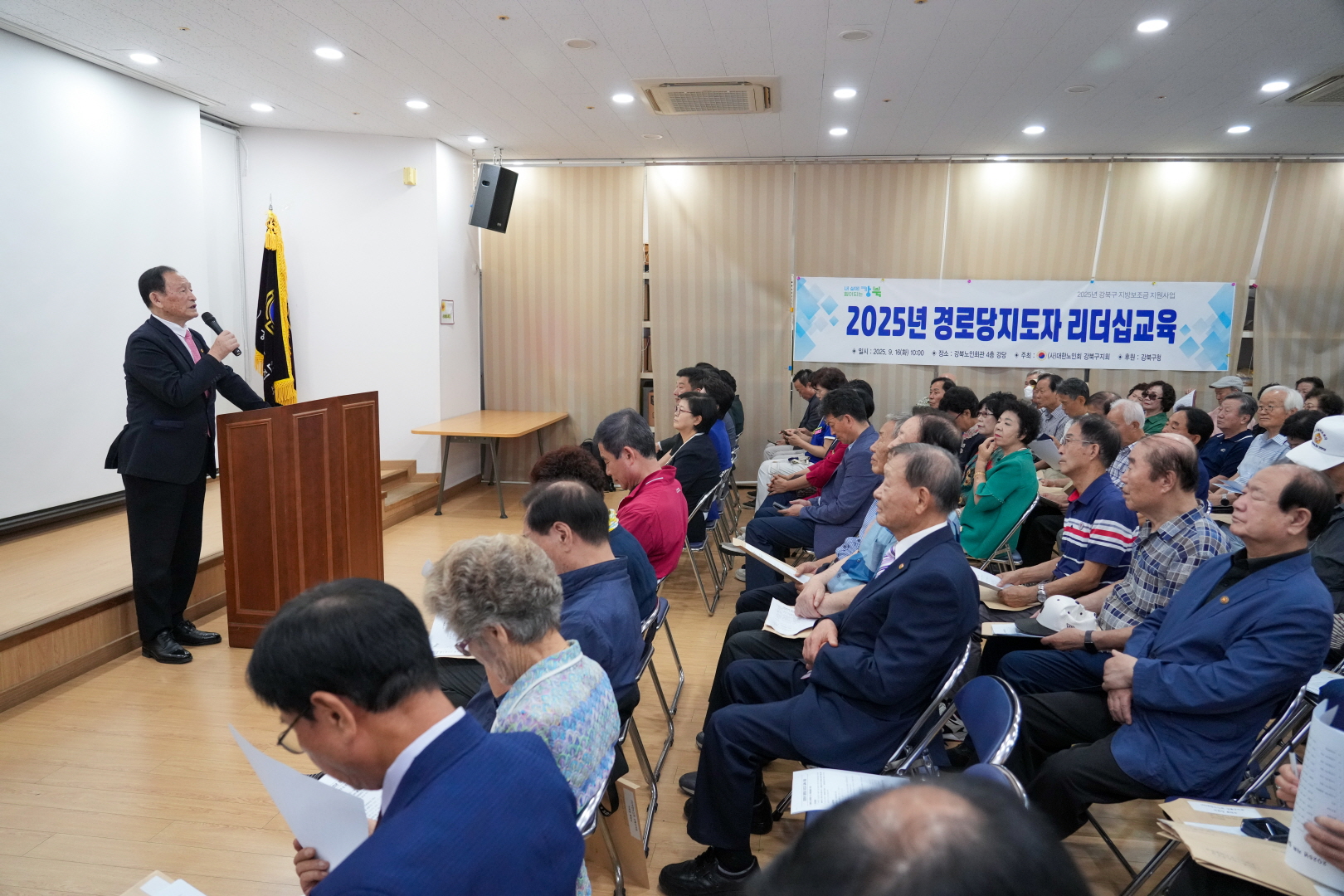 9월 16일 강북구노인회관에서 <경로당지도자 리더쉽 교육>이 열렸습니다.