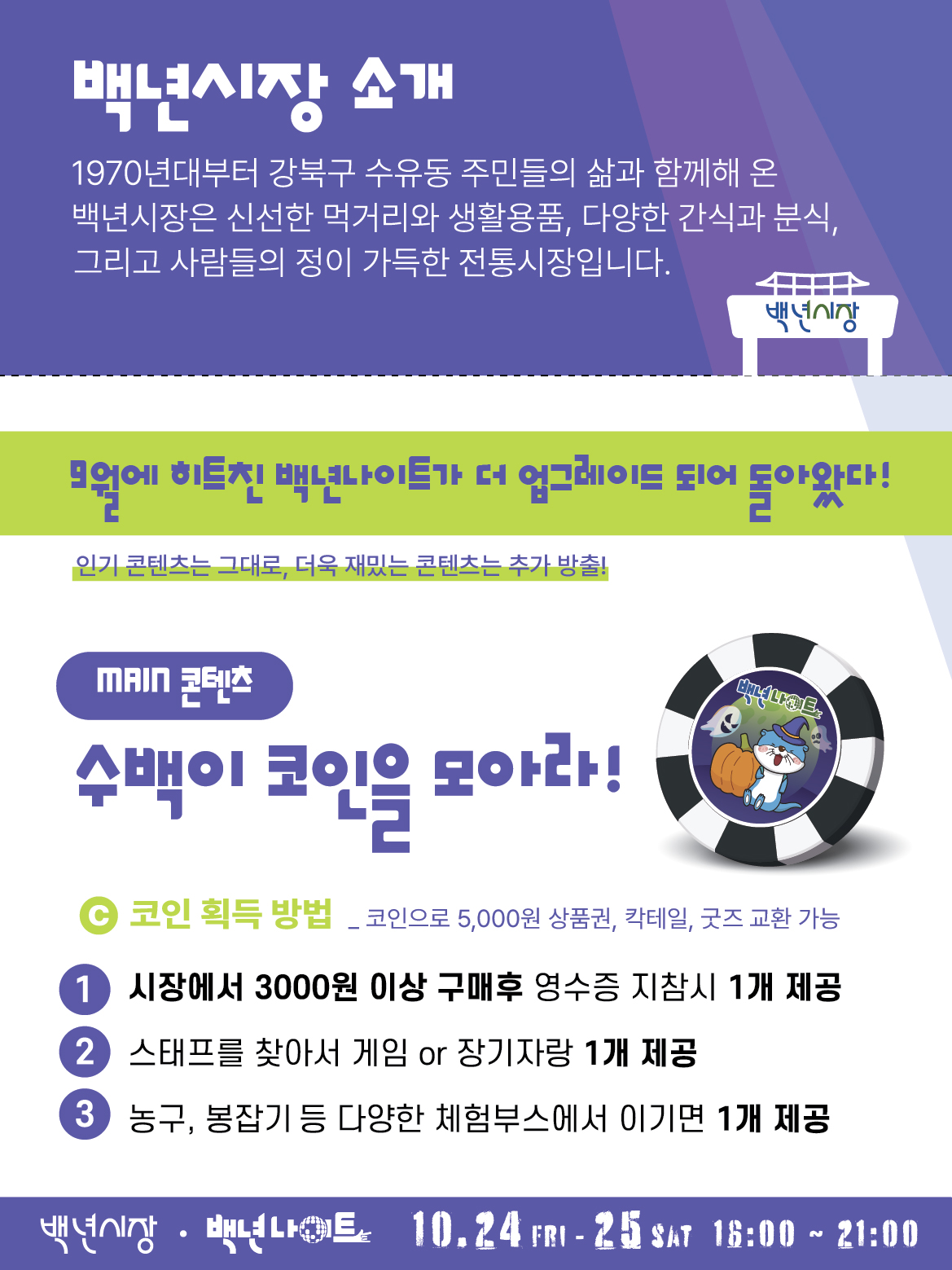 ○ 문 의: 백년시장 문화관광형시장 육성사업단(02-903-9110, 카카오톡 채널 "백년시장" 친구추가)