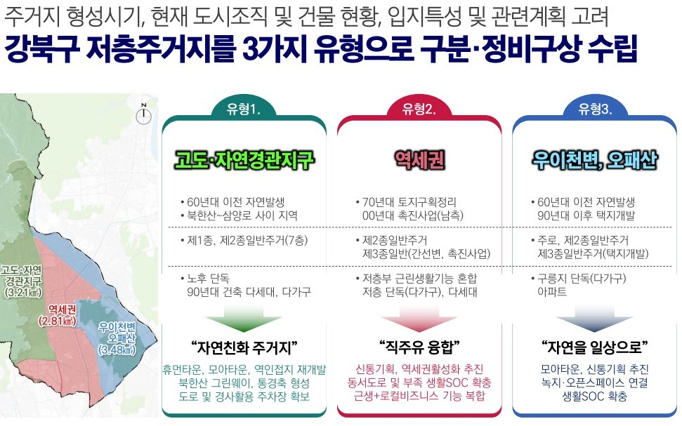 강북구 저층주거지를 3가지 유형으로 구분하여 정비방안 구상