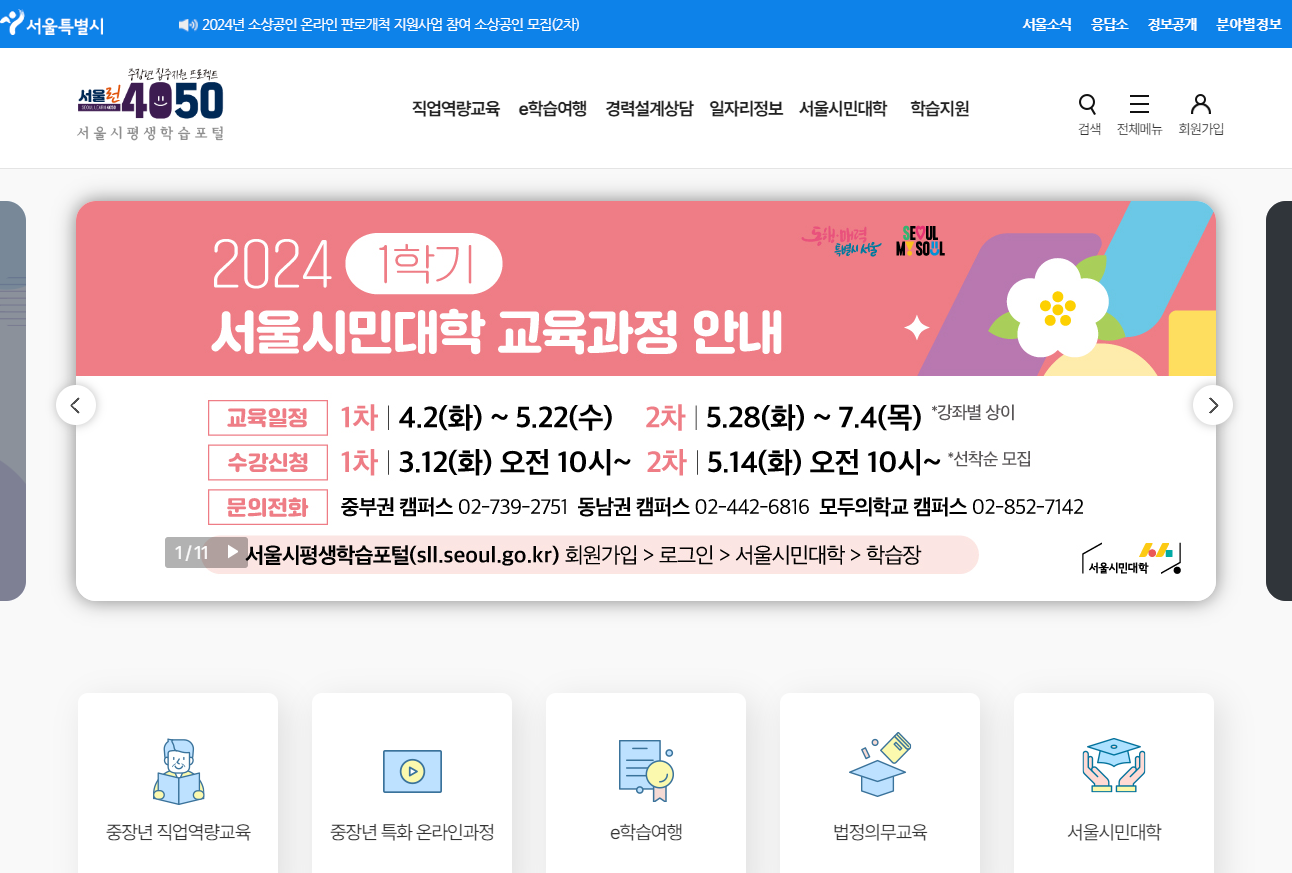 - 서울시 홈페이지 회원이면 누구나 수강신청을 할 수 있습니다.